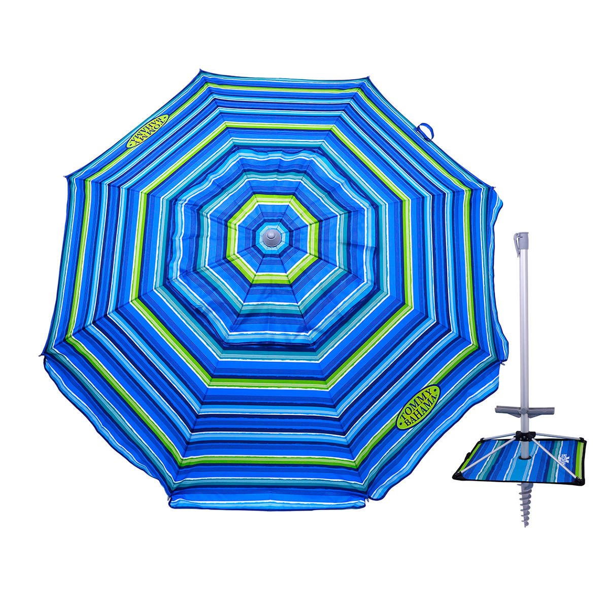 - Tommy Bahama Fiberglass 7 ft Beach Umbrella with Sand Aluminum Anchor Base Pole, Tilt